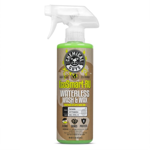 EcoSmart-RU Waterless Car Wash is a detailing product that cleans. shines. and protects your vehicle without running water. Formulated with eco-based natural carnauba wax and hyper-efficient lubricating agents. it emulsifies and lifts dirt away from the surface. ensuring a scratch-free finish. EcoSmart-RU provides a brilliant shine and durable protection in one easy step. ideal for paintwork. glass. plastic. and metal use.Â