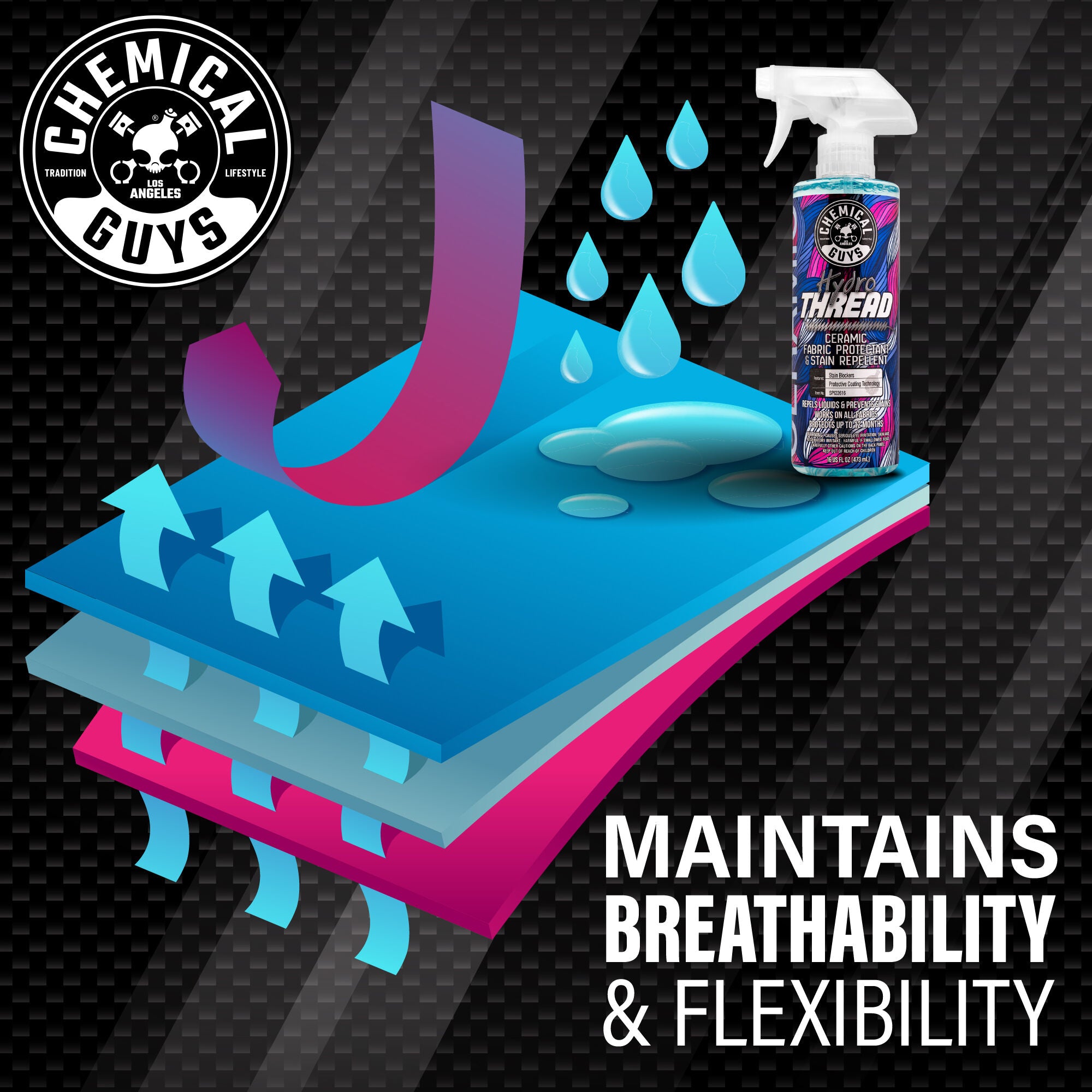 HydroThread is a super hydrophobic stain guard that offers the protection of a ceramic specifically for textiles. It’s engineered for extreme durability and hydrophobicity on fabric and cloth surfaces. You’ll love how it helps repel water and stains without compromising the look and feel of the fabric.