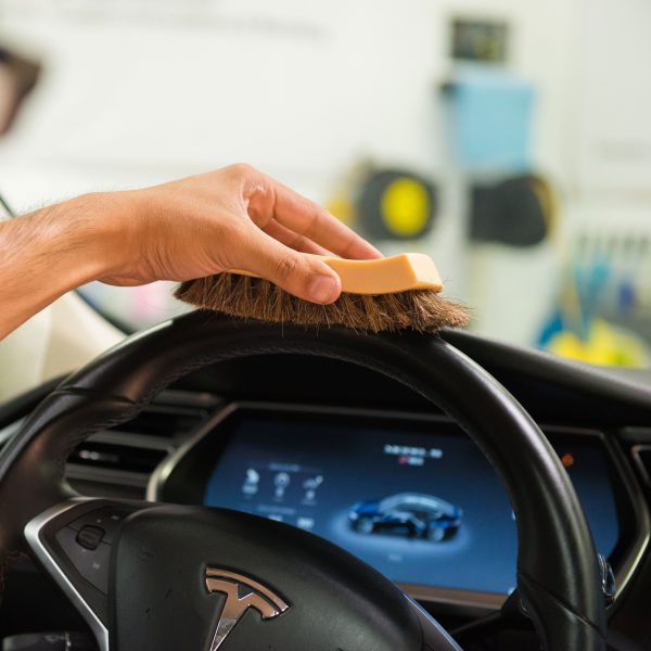 This brush offers a gentle. effective cleaning solution for your beloved leather surfaces. Crafted with synthetic horse hair bristles. it tackles dirt and stains while remaining gentle to protect your sensitive leather. The long bristles effortlessly reach deep into the pores of leather. fabric. canvas. and convertible tops. helping to break down and lift away embedded grime for a wonderfully thorough clean.