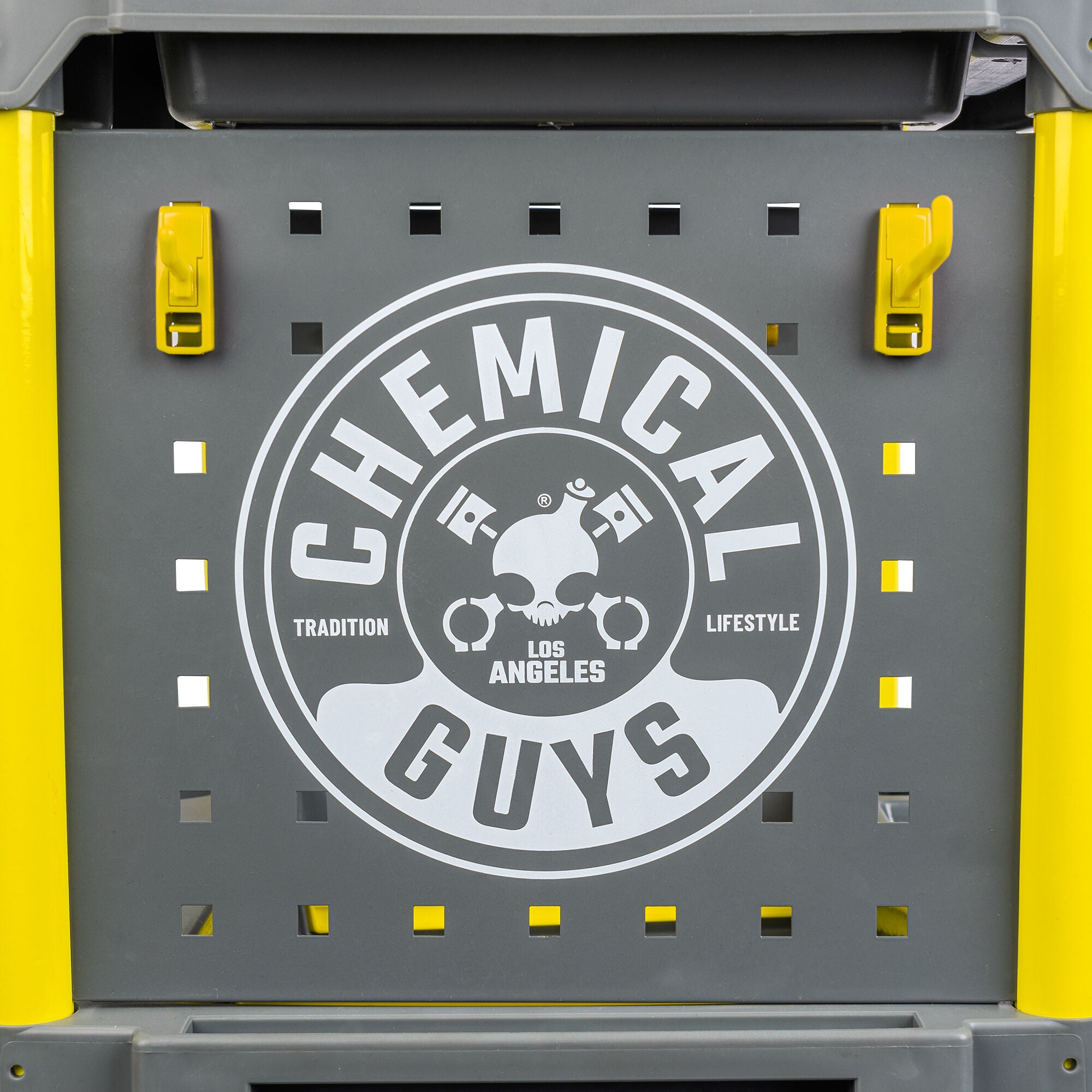 The Chemical Guys Shine Station Ultimate Detailing Cart is the customizable must-have rolling accessory to organize your detailing arsenal and take it on the go with three shelves. numerous bottle holders. hanging racks. and more.